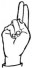 На ћирилици написано НЕДА БАЛОТИЋ састоји се из 11 слова [?]. Исписано ћириличном једноручном азбуком за глувонеме:
